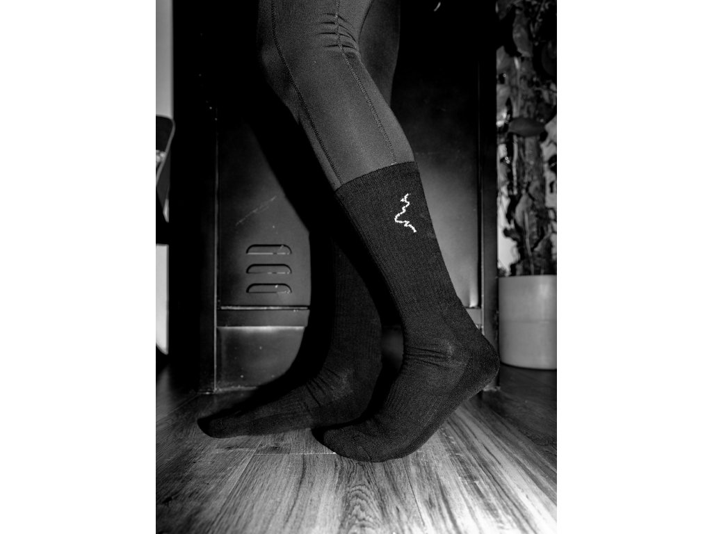 První ponožky Těhotnýho kuchaře - minimalističtější verze černých ponožek s bílým logem. V prodeji v průběhu prvního prosincového týdne.