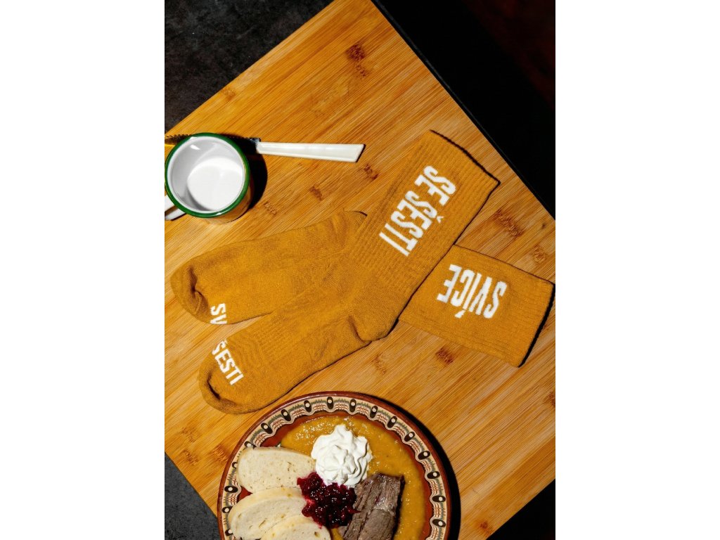 První ponožky Těhotnýho kuchaře - a co je větši klasika než svíčková se šesti (ideální počet knedlíků). V prodeji v průběhu prvního prosincového týdne.